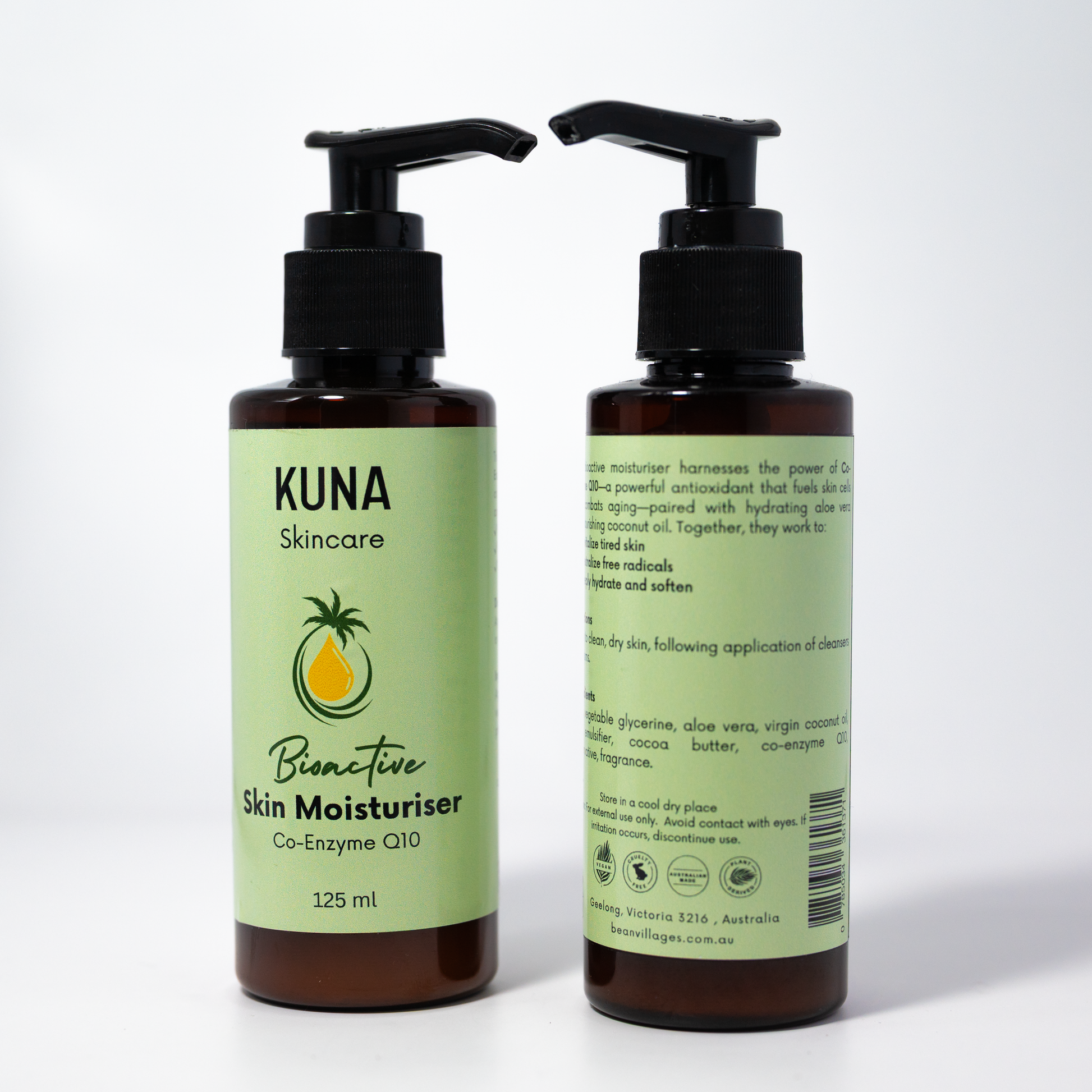 Reawaken your skin’s natural vitality with KUNA Bioactive Skin Moisturiser, a rich, antioxidant‑powered formula infused with Co‑Enzyme Q10—one of skincare’s most effective defenders against aging. This nourishing moisturiser works at a cellular level to energise tired skin, neutralise free radicals, and restore long‑lasting hydration.